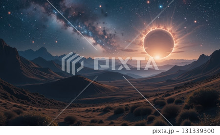 Landscape background Majestic glacier covered peaks under starlit sky create breathtaking view. vibrant colors of sunset blend beautifully with night sky, evoking sense of wonder and tranquility