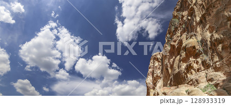 Mountains of Petra (against the background of a beautiful sky with clouds), Jordan, Middle East. Petra has been a UNESCO World Heritage Site since 1985