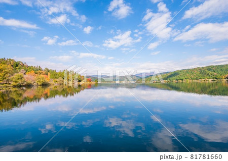 余呉湖 秋 リフレクション 壮大な景色