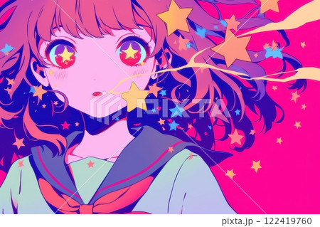 星に彩られたかわいい日本人の女の子(アニメ・マンガ・少女・異世界)