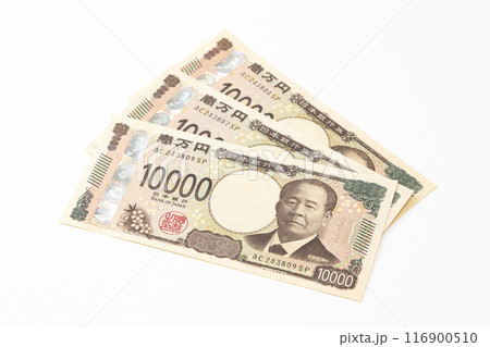 日本円一万円札が三枚並ぶ資金と経済のコンセプト