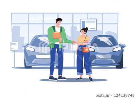 Salesperson Showing The Vehicle To A Potential Customer In The Dealership