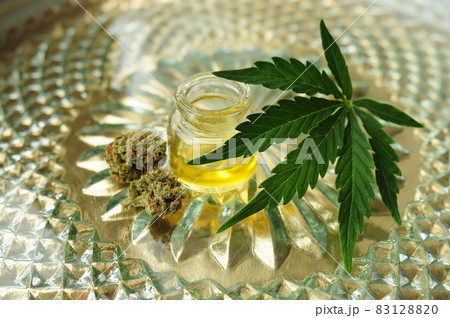 Cannabis leaves, cbd oil. Marihuana extract in cosmetology.