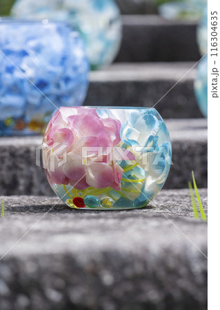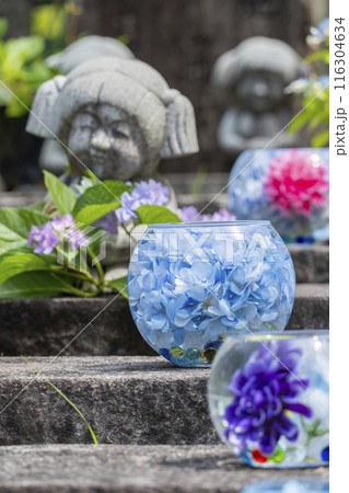 壷阪寺あじさいモニュメント 紫陽花ガラスボール
