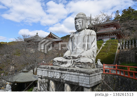 サクラ咲く壷阪寺 大釈迦如来石像