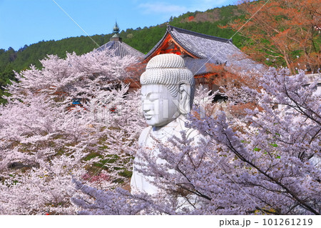 【奈良県】桜が満開の壺阪寺(大観音石像)