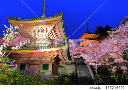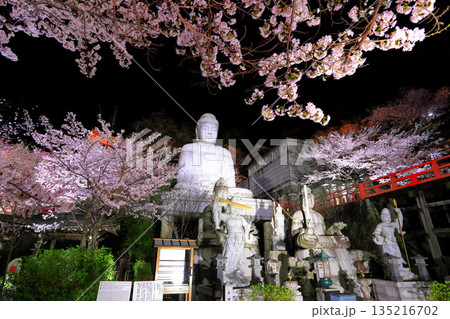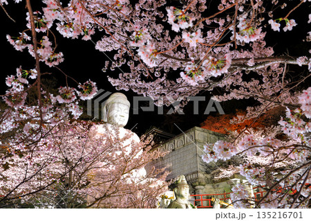 【奈良県】桜が満開の壺阪寺の夜景(桜大仏)