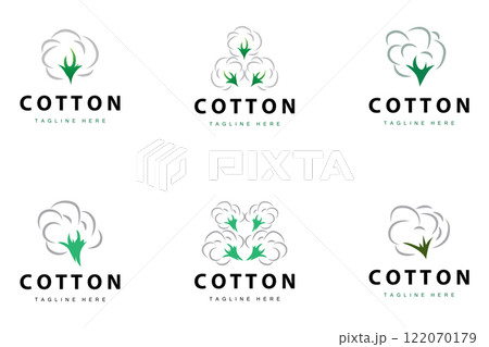 cotton logo design flower soft cotton organic plant textile material clothing illustration template bundle set collection