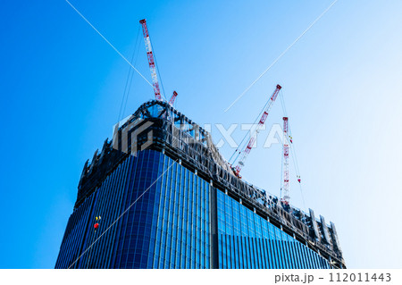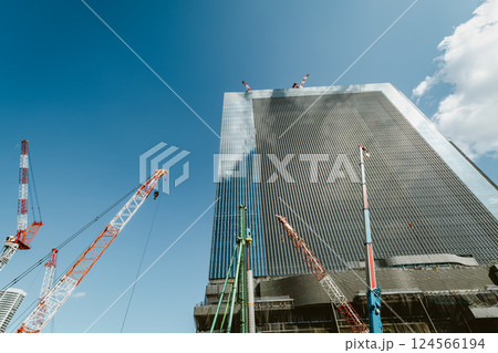 建設中の高層ビルと青空 高輪ゲートウェイ 2024.04 d-3 ライトカラー