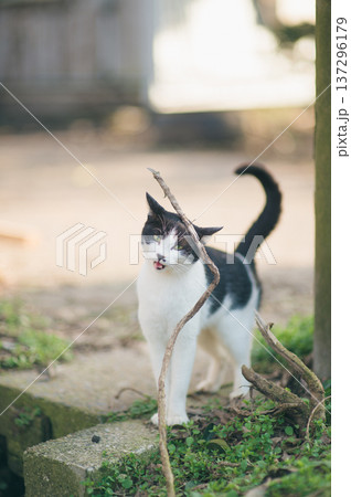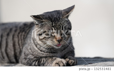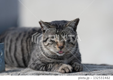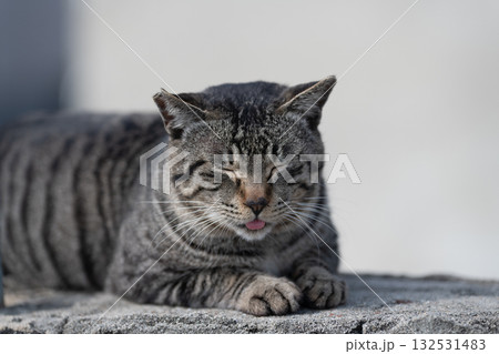 高齢者のおじいちゃん野良猫のお茶目な表情