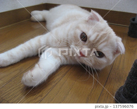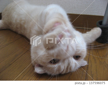 ひっくり返って寝転ぶ子猫