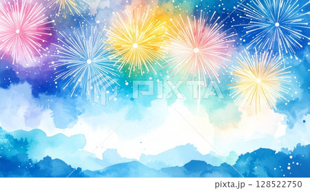 空に咲く花火の背景素材