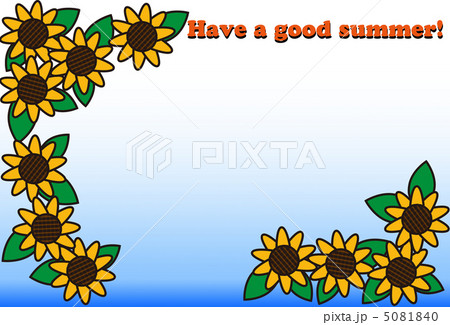 バナー 夏 ひまわり 青空 向日葵 ヒマワリ 手描き フレーム 背景 イラスト素材