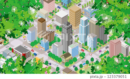 新緑の街並みイラスト.