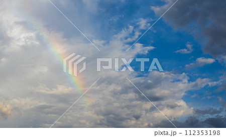 夕方の青空にあらわれた虹とたくさんの雲