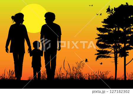 Cute Family Silhouette Landscape