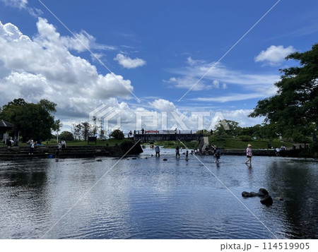 熊本 夏の夏の江津湖公園じゃぶじゃぶ池