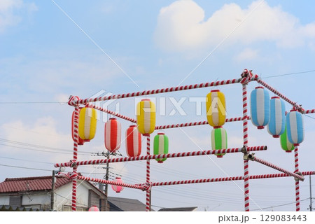 色とりどりの提灯と紅白のやぐら