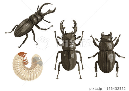 昆虫採集、虫取り、虫あみと子供、カブトムシ