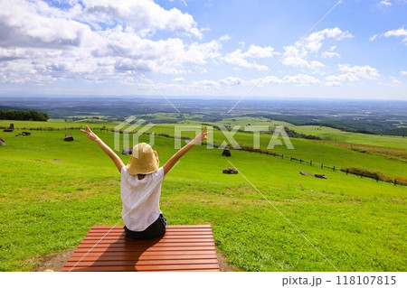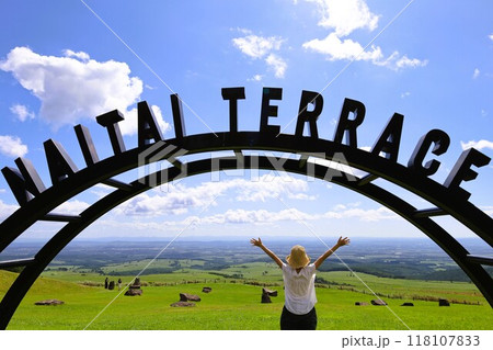 夏の北海道、ナイタイテラス、十勝平野、牧草地、日本一広い牧場、はてしない大空、ナイタイ牧場、八月