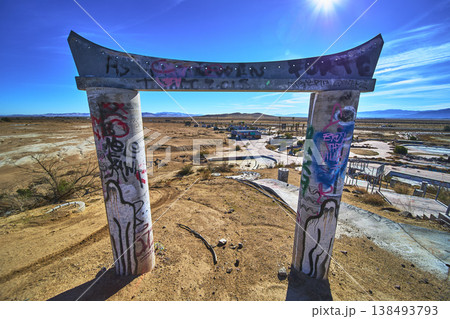 Abandoned Graffiti Covered Structure in California Desert at Lake Dolores Water Park