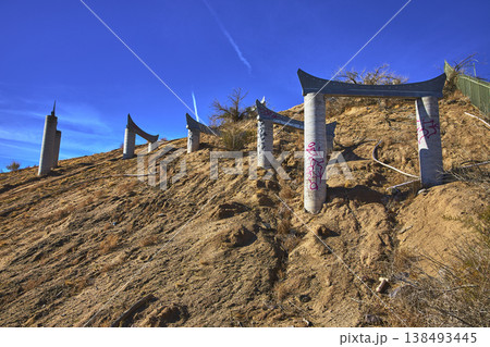 Abandoned Graffiti Covered Water Park Structures on Desert Hill in California