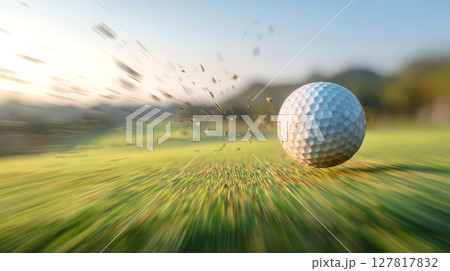 White golf ball resting on a perfectly mown putting green, poised for the next shot on a sunny day, creating a serene and focused atmosphere for golfers enjoying their game