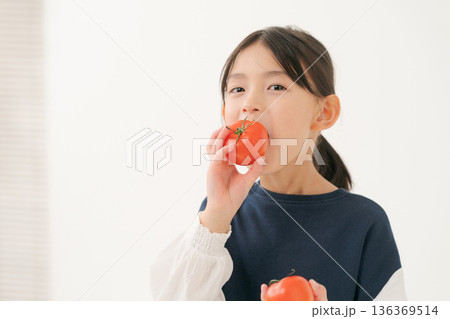 トマトを食べる女の子
