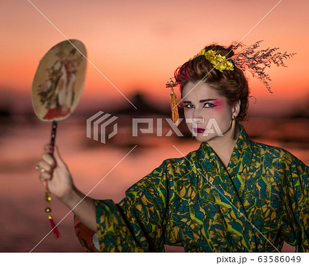 European woman in Geisha kimono