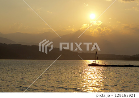 Sailing boats at Lake Millstatt during sunset, Carinthia, Austria