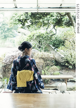 浴衣の若い女性 夕涼み