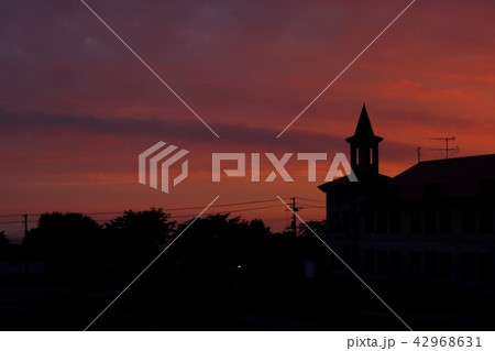 学校と夕焼け空の風景