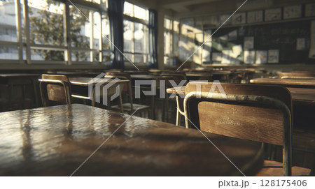 夕陽が差し込む誰もいない教室 ノスタルジックな雰囲気