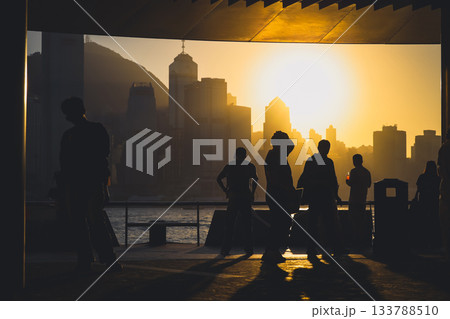 Aug 1 2025 Cityscape of Hong Kong Harbour at Sunset With Skyscrapers