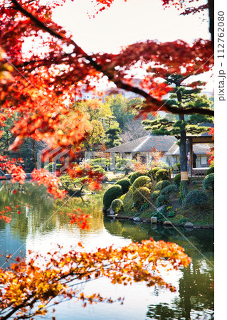滋賀県びわこ文化公園夕照の庭の美しい紅葉