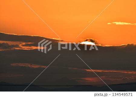 日本の横浜都市景観飛行機…日本経済の憂鬱…雲間に沈む夕日。オレンジ色に染まる空…明日はどんなものに…
