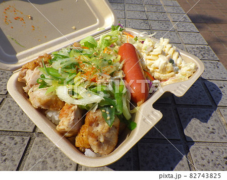 キッチンカーのテイクアウトランチ ネギ塩チキンランチ 外ご飯