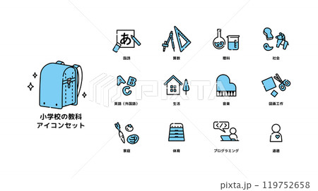 小学校 教科 教科書 授業 アイコン セット
