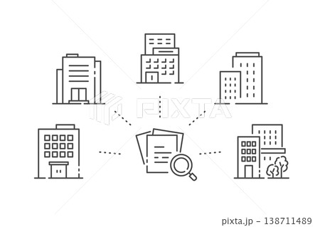 複数社の見積もり比較や一括査定を表すベクターイラスト(線画・モノクロ)