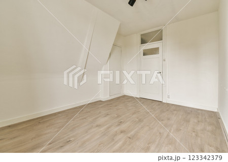 A clean and minimalist room featuring white walls and a wooden floor, showcasing simplicity and tranquility in interior design.