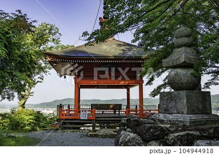新緑の常寂光寺 多宝塔(重文)と青もみじ 京都嵯峨小倉山小倉町(藤原定家の小倉山荘「時雨亭」の地)