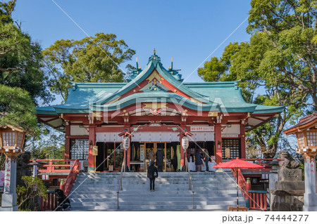 神社仏閣 多摩川浅間神社の本殿と参拝者 東京都大田区