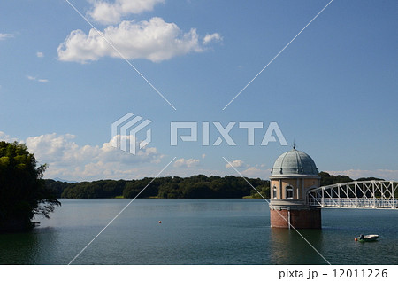 東京都村山市にある、村山貯水池(別名:多摩湖)英称:Murayama Reservoirの第一取水塔