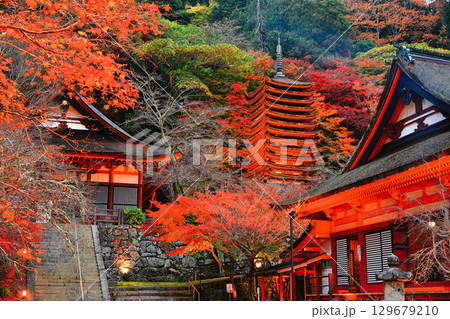 【奈良県】談山神社の紅葉ライトアップ(十三重塔と神廟拝所)