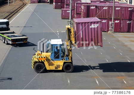 コンテナを運ぶフォークリフト