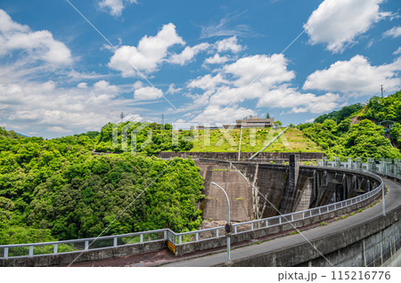 木曽川水系のロックフィルダム阿木川ダム堰堤風景