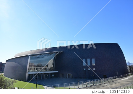 「青森県」快晴の空とYSアリーナ八戸(長根屋内スケート場)・八戸市