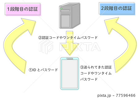 二段階認証や二要素認証の流れをイメージしたイラスト