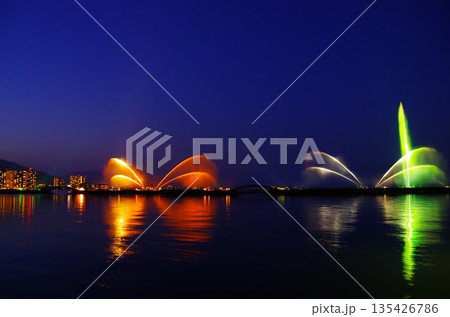 滋賀県 琵琶湖の名所 びわこ花噴水の美しい夜景