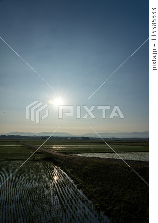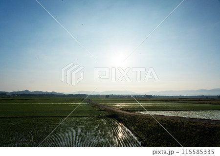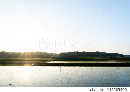 田植直後の水田の夜明けのころ
